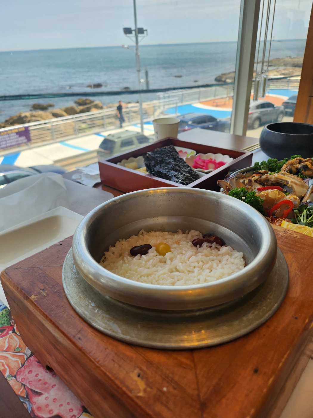 특히 가족 단위 손님과 커플들이 조용히 식사하고 있는 모습이 인상적이었고, 바다를 바라보며 오붓하게 대화 나누기 딱 좋았어요.