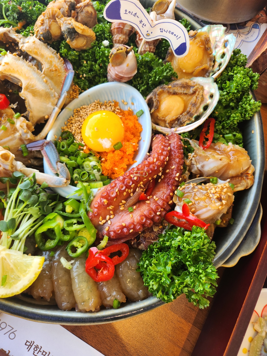 - 연어와 날계란, 해물알, 고동, 소라, 멍게, 새우까지, 눈으로 보기에도 다채롭고, 입에 넣는 순간 바다의 향이 퍼져요.