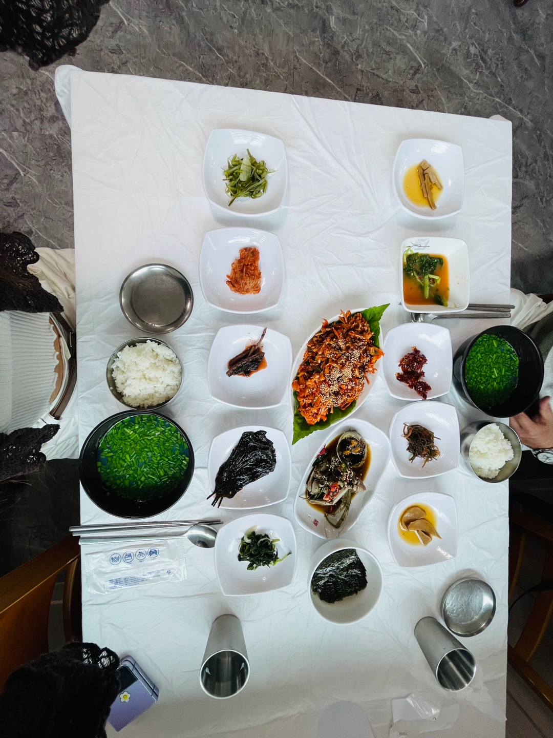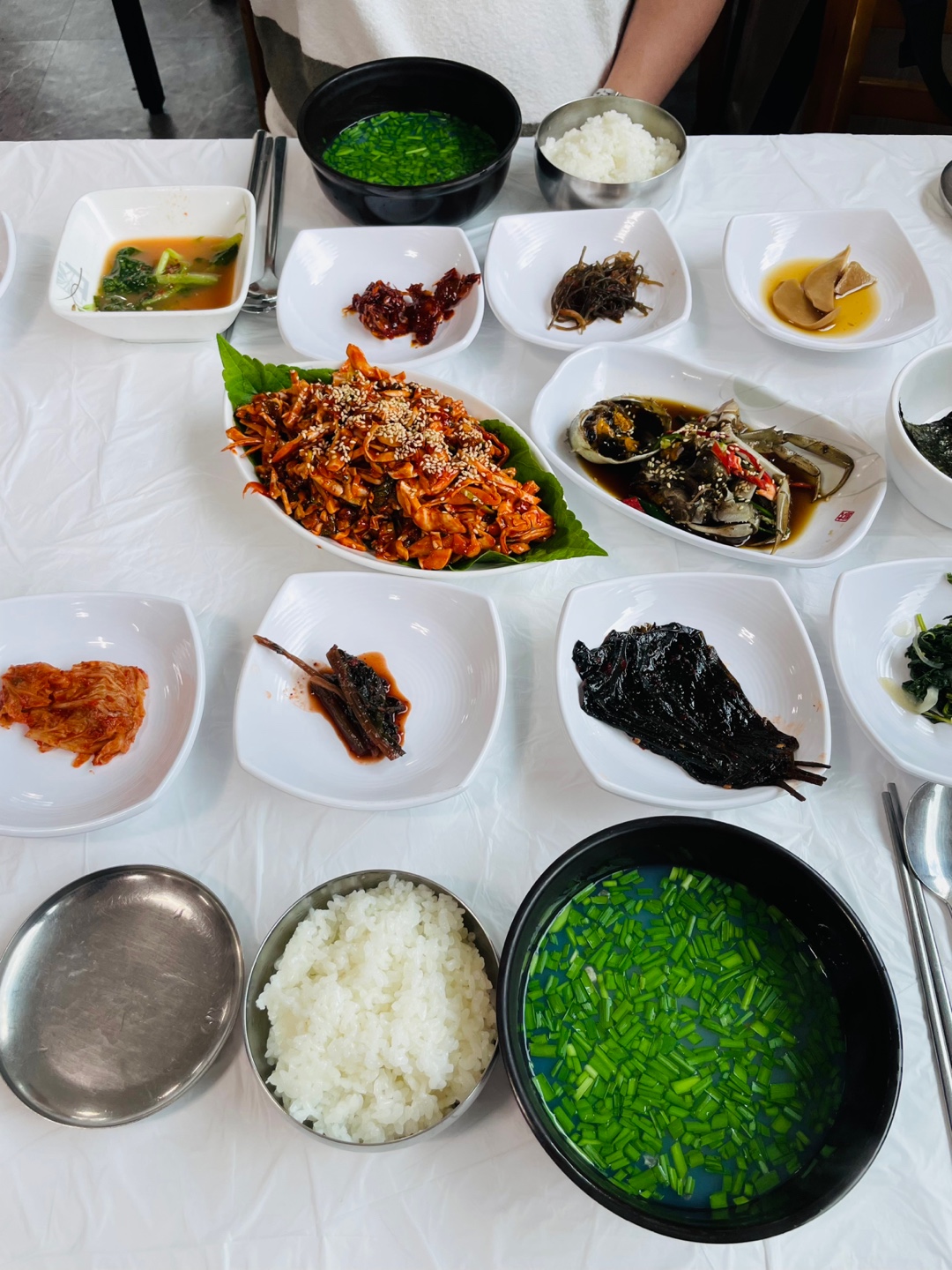 하동이라면 꼭 맛봐야 할 재첩과 참게가 모두 들어간 정식 구성이에요.
